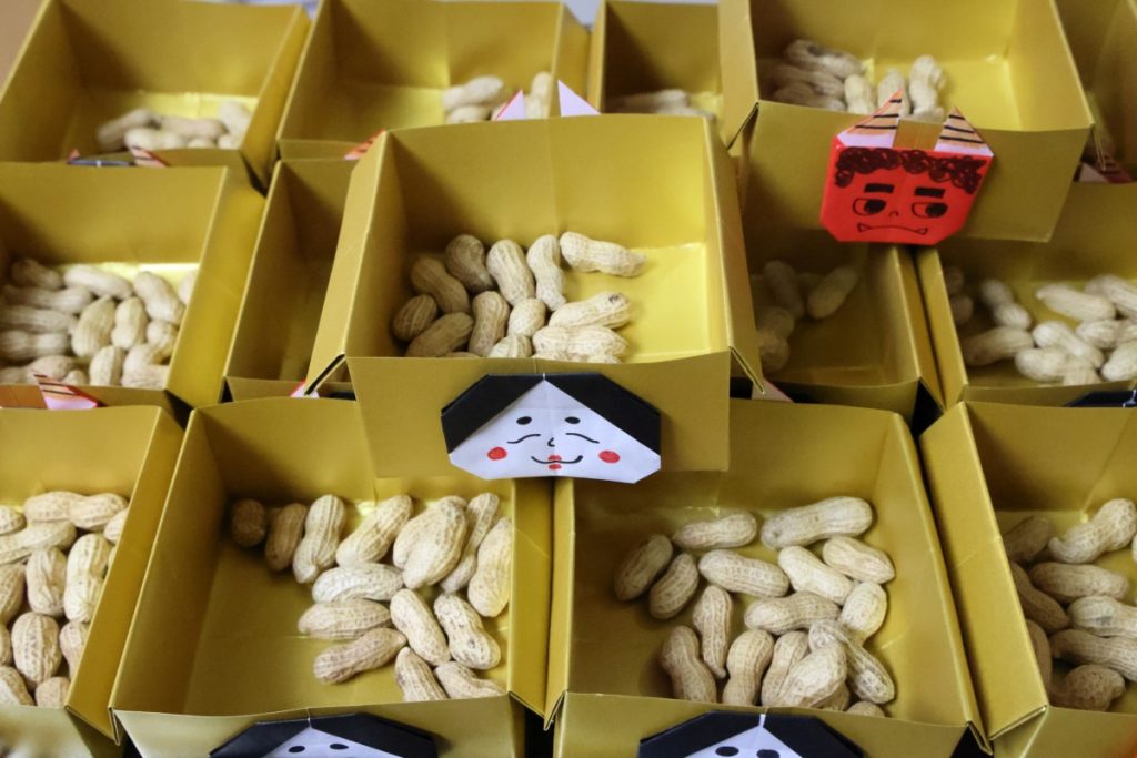 お部屋にお邪魔して、皆さんに豆をまいてもらいました